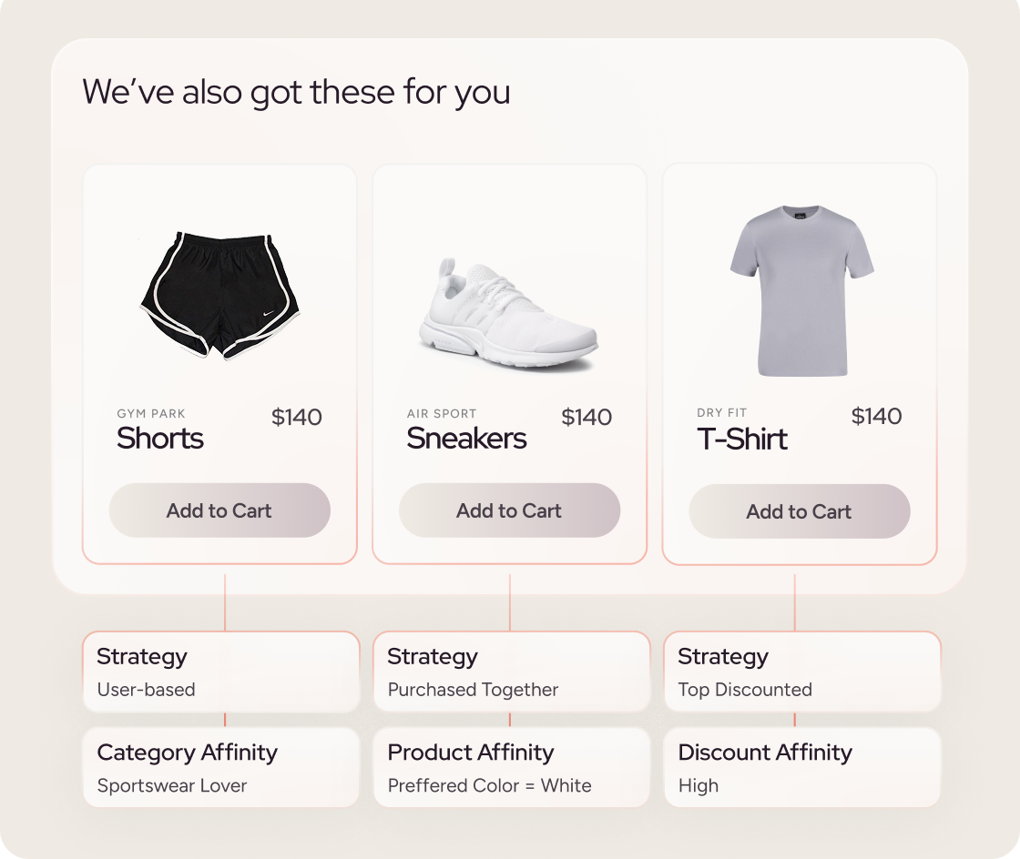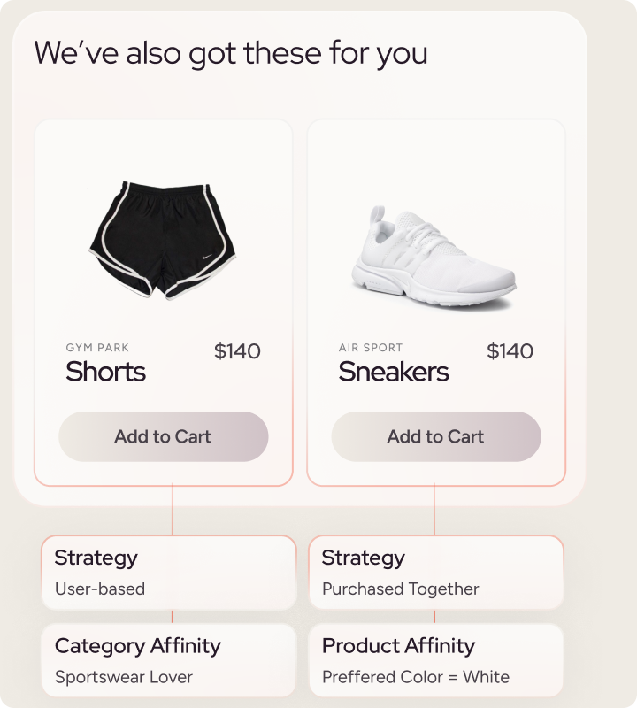 With 20+ proven algorithms, tailor product suggestions to each visitor. Blend product attributes with customer behavior to drive more sales.