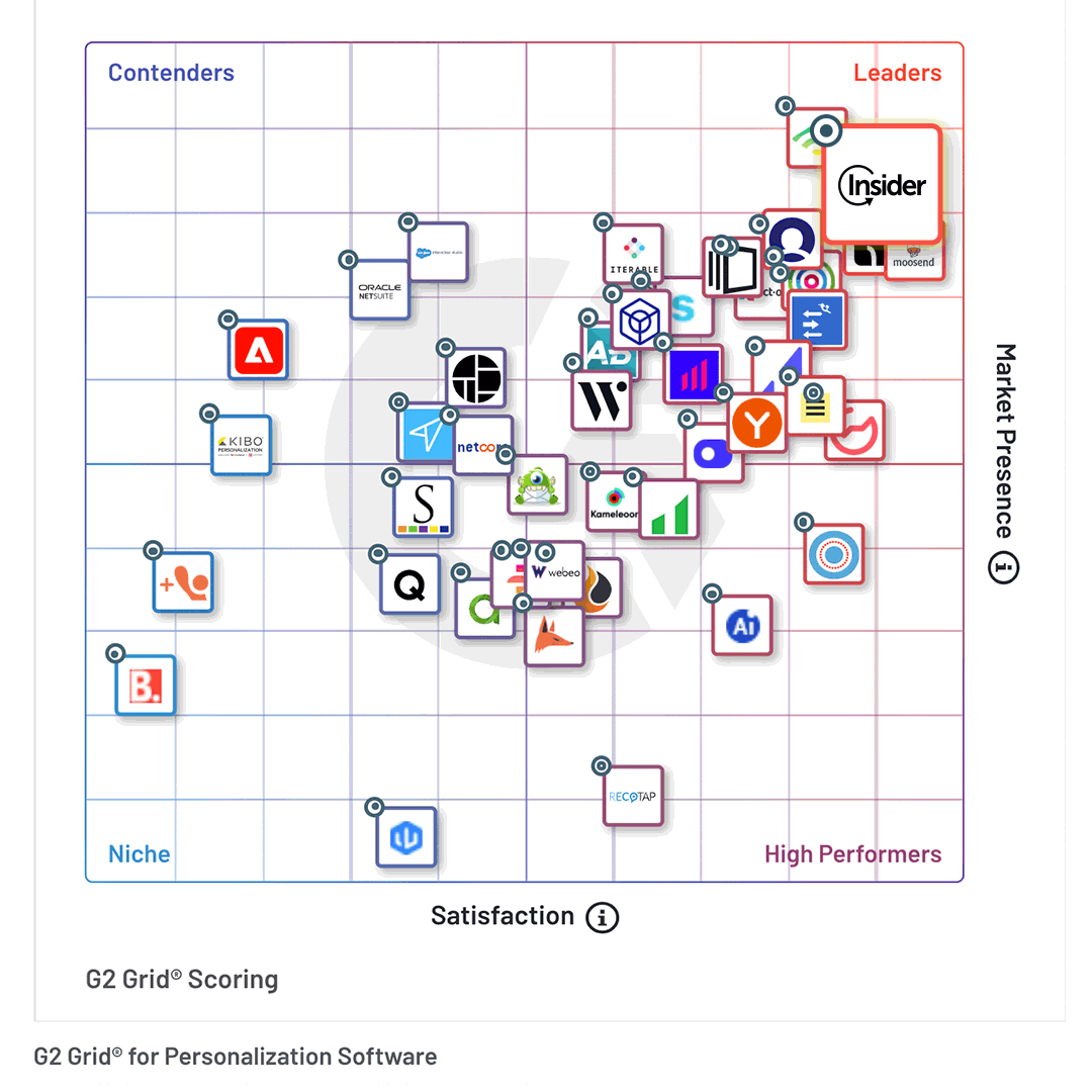 Insider has proven time and again that they are a Leader not only in their field but also on G2. Based on their high Satisfaction score and high Market Presence, 99% of its users have given 4-5 star ratings. It’s clear by their sustained success that Insider has distinguished themselves as a trusted partner and product.
