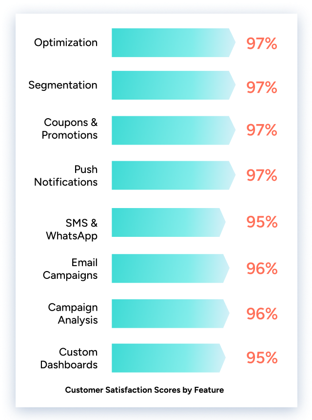 Insider scored 99/100 for its Integration capabilities—10% higher than the industry average. Sync customer, engagement, and product data across your entire tech stack with 100+ out-of-the-box integrations in 20+ categories, including CRM, data warehouses analytics, paid ads, social media, and more.