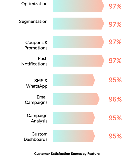 We’ve built strong cross-channel capabilities for mobile marketing by offering seamless and individualized experiences across channels like Mobile App, App Push, Email, WhatsApp, SMS, and more.