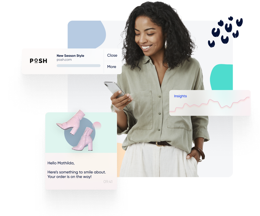 Use SMS to engage offline customers on one of their favorite messaging channels. Keep them up to date on sales, limited-time offers, transactional notifications, and not-to-be-missed events. Encourage cart abandoners to return by reminding them of the items they’ve left behind.