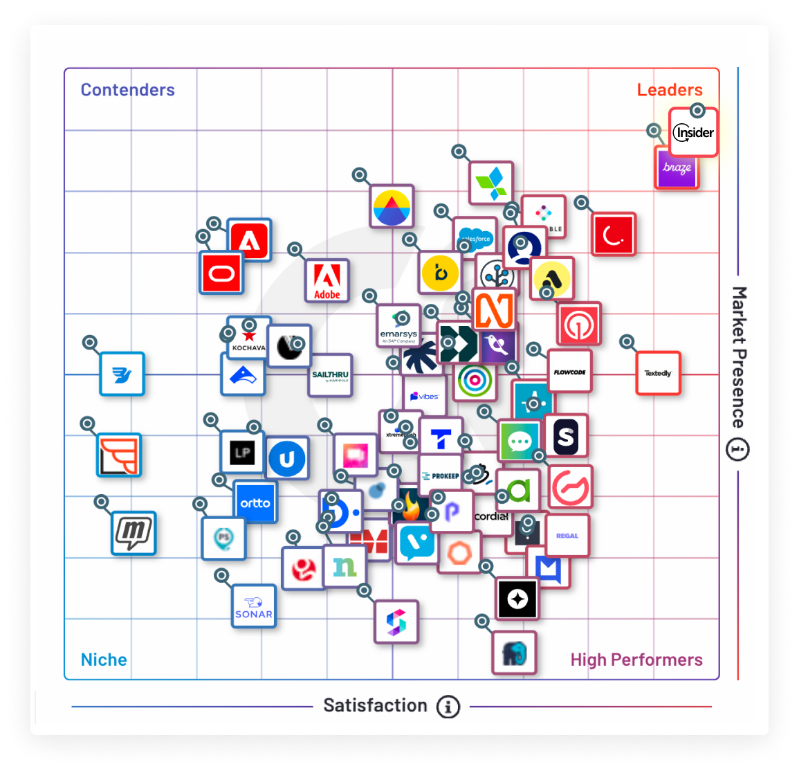 Deliver convenience, immediacy, and conversational experiences – at speed and scale. With the highest score in G2’s Mobile Marketing Report (99/100), Insider outperforms all other vendors. Keep reading to explore what makes Insider the #1 choice for mobile marketers.