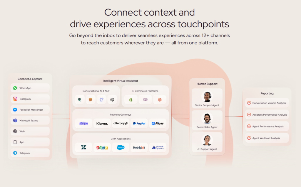 Our platform acts as both the execution layer and the connective tissue across marketing capabilities, so virtual and human agents can orchestrate experiences with full customer context.