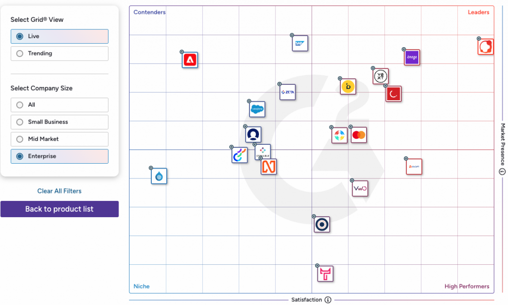 As a robust solution for midsize and enterprise businesses, Insider One also ranks at the top of other key categories like: