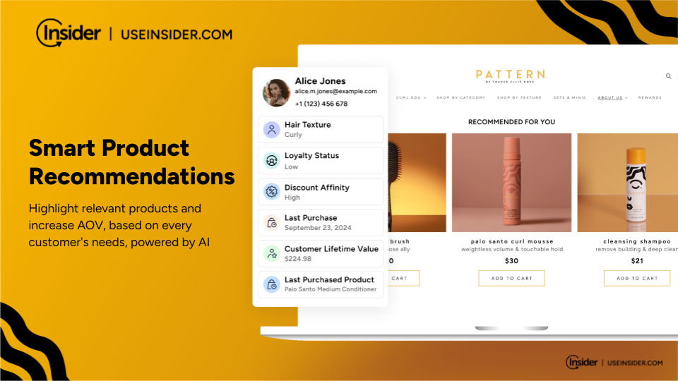 During the event, I sat down with Christiane Pendarvis, Co-CEO of PATTERN Beauty, to discuss how personalization, AI, and zero-and-first-party data are fuelling their growth and increasing customer engagement, and driving deeper and more valuable connections with their customers. PATTERN Beauty, founded by Tracee Ellis Ross, aims to help people “embrace the hair they have” by providing haircare products that cater to diverse hair types and regimes. Together, we explored how PATTERN’s customer-centric approach is redefining personalization in the beauty industry, powered by Insider.