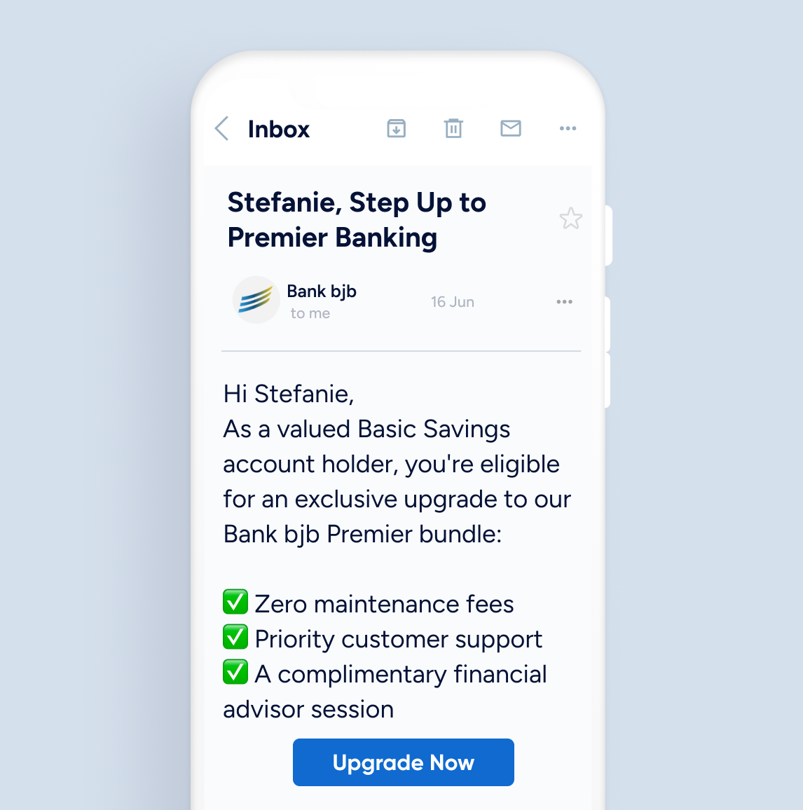 Win back disengaged customers through email campaigns offering bundled upgrades with real value. Give priority support, fee waivers, and loyalty rewards that spark action.