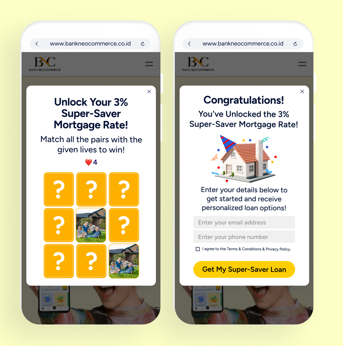 Engage high-intent, pre-login anonymous visitors through mobile-friendly, gamified templates like spin-the-wheel or memory games. Collect key customer data upfront, lower acquisition costs, and lay the groundwork for personalized engagement.