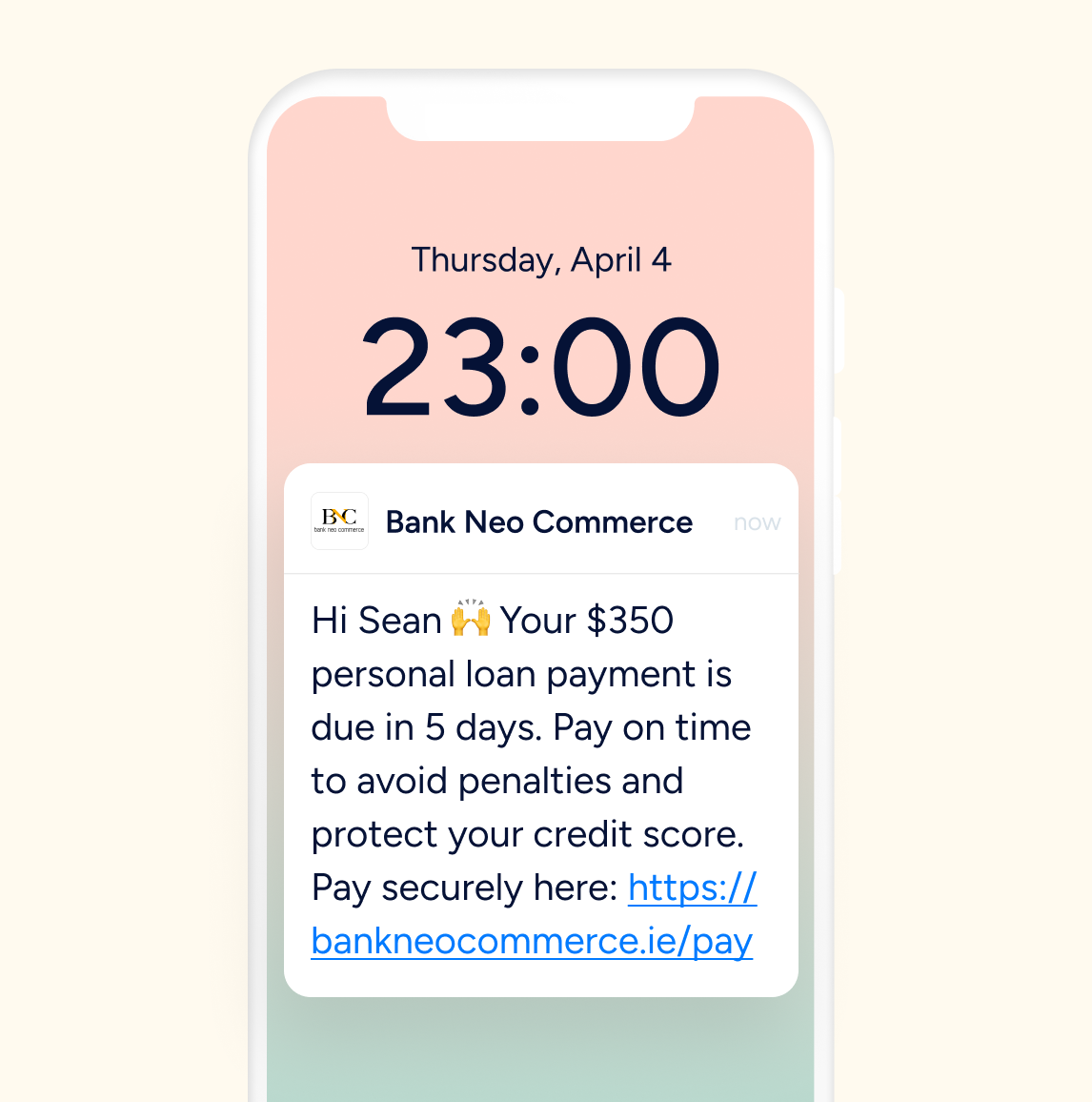 Send smart SMS nudges before Equated Monthly Instalment (EMI) due dates with amounts, deadlines, and reward hooks. Reinforce trust with timely, personalized EMI reminders.