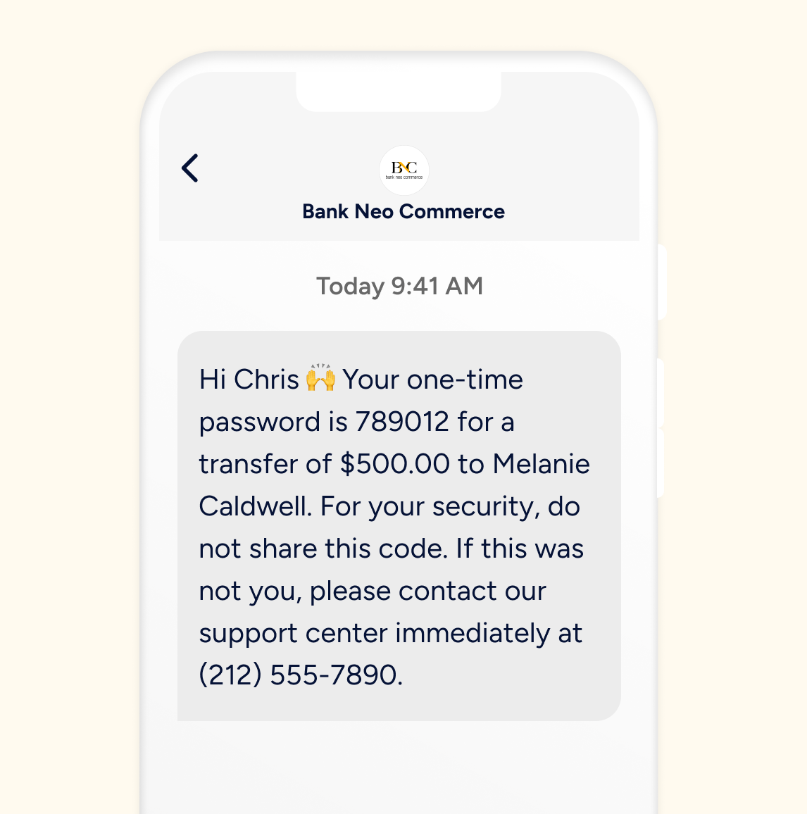 Protect high-value transactions with OTP-based verification delivered via SMS. Confirm user intent instantly to prevent fraud, reduce risk, and uphold trust at scale.