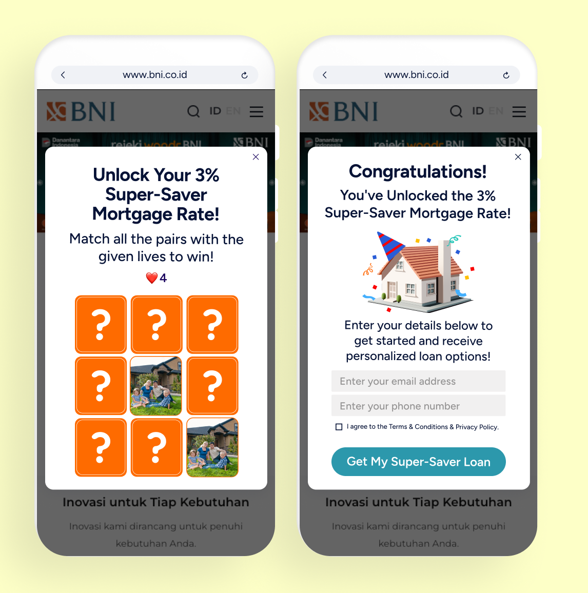 Engage high-intent, pre-login anonymous visitors through mobile-friendly, gamified templates like spin-the-wheel or memory games. Collect key customer data upfront, lower acquisition costs, and lay the groundwork for personalized engagement.