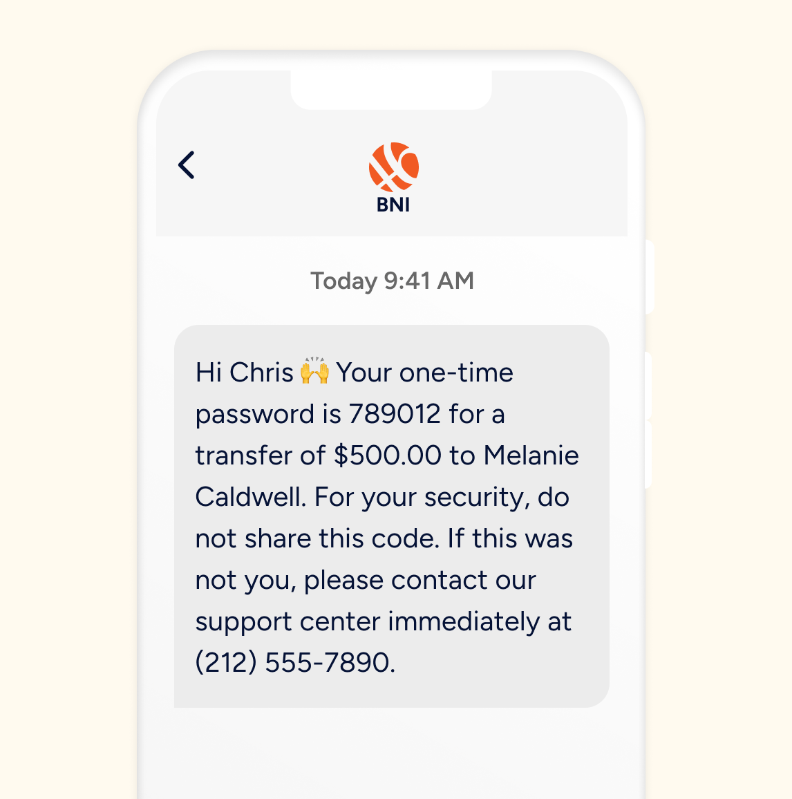 Protect high-value transactions with OTP-based verification delivered via SMS. Confirm user intent instantly to prevent fraud, reduce risk, and uphold trust at scale.
