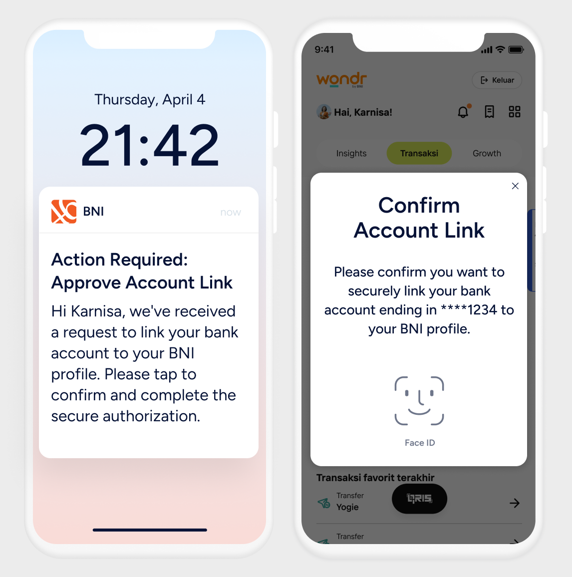 Trigger push notifications and require biometric or PIN confirmation for sensitive onboarding actions. Personalize flows by role and risk, ensuring security without disrupting the customer experience.
