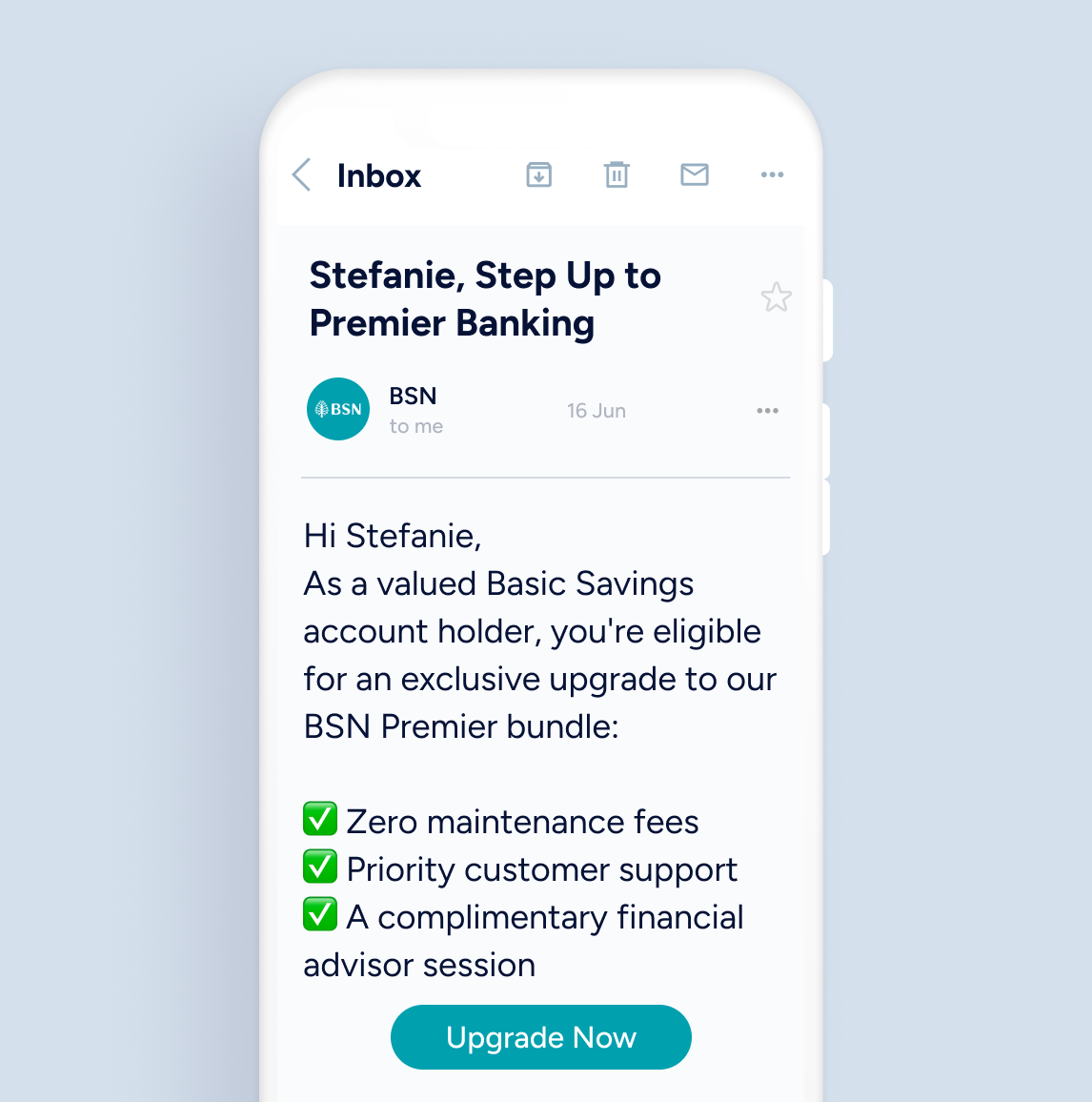Win back disengaged customers through email campaigns offering bundled upgrades with real value. Give priority support, fee waivers, and loyalty rewards that spark action.