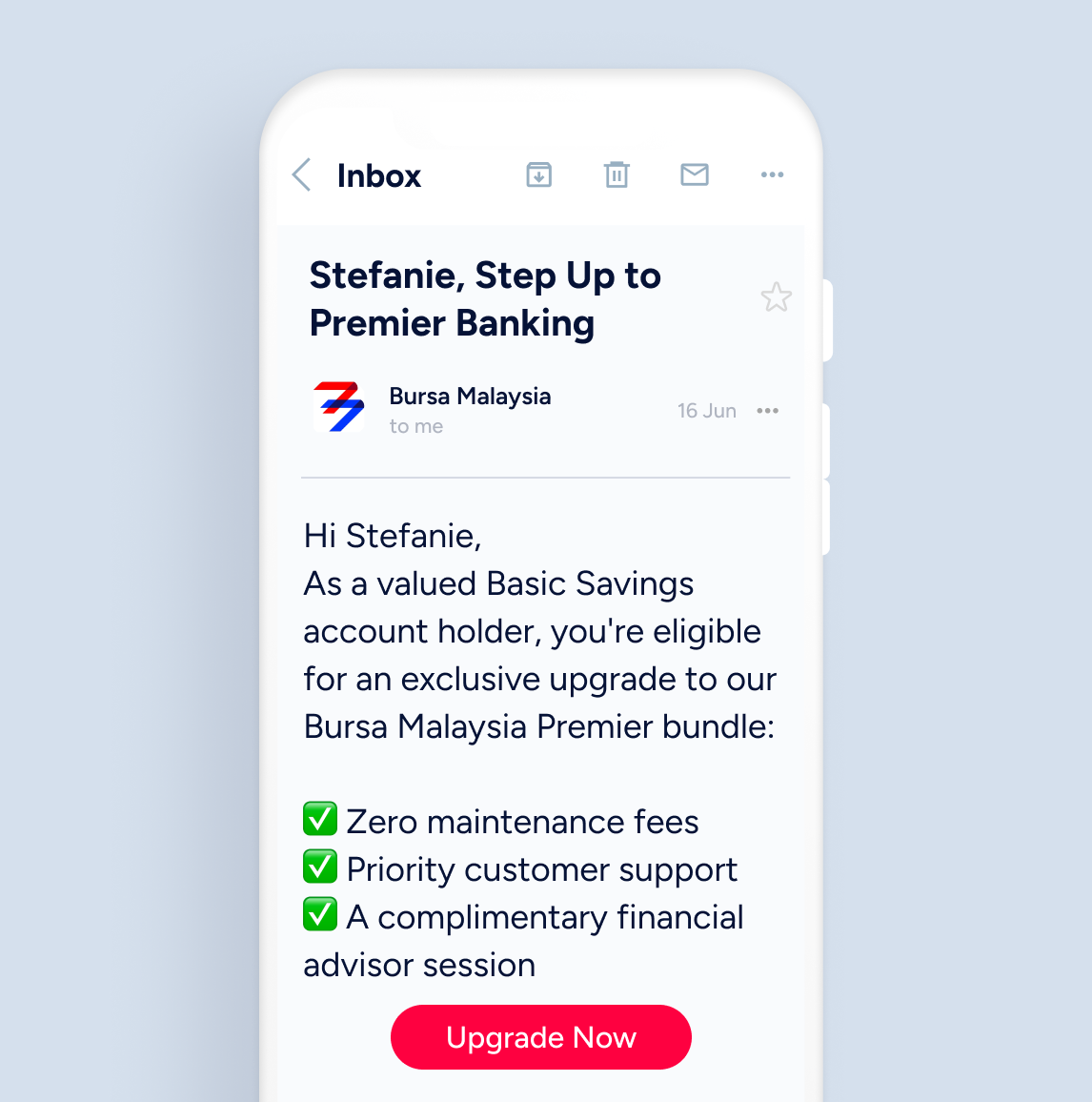 Win back disengaged customers through email campaigns offering bundled upgrades with real value. Give priority support, fee waivers, and loyalty rewards that spark action.