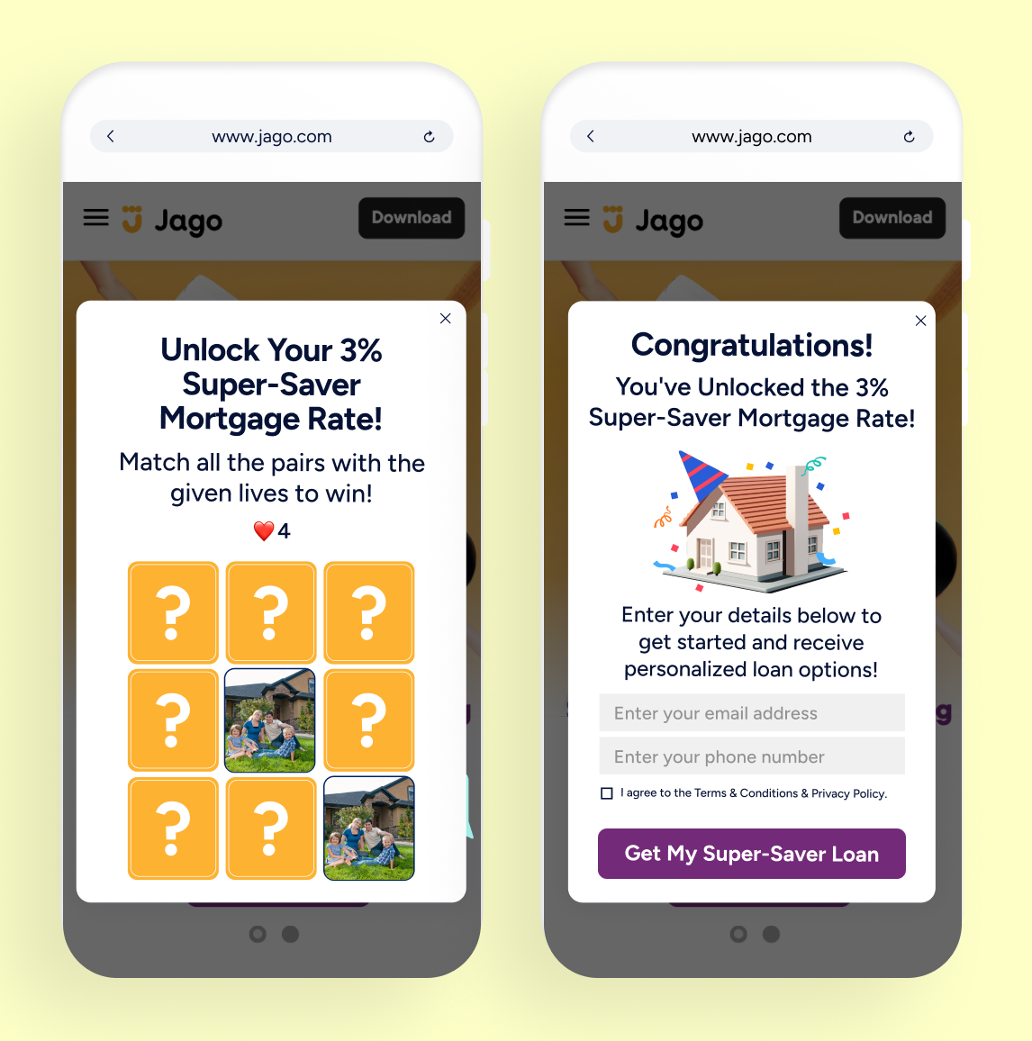 Engage high-intent, pre-login anonymous visitors through mobile-friendly, gamified templates like spin-the-wheel or memory games. Collect key customer data upfront, lower acquisition costs, and lay the groundwork for personalized engagement.