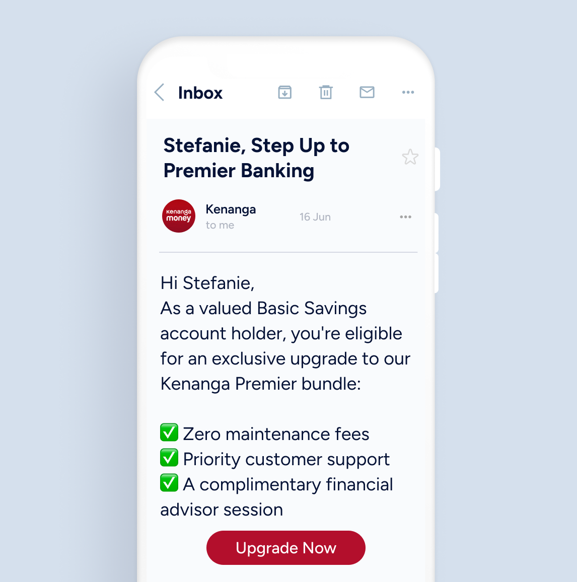 Win back disengaged customers through email campaigns offering bundled upgrades with real value. Give priority support, fee waivers, and loyalty rewards that spark action.
