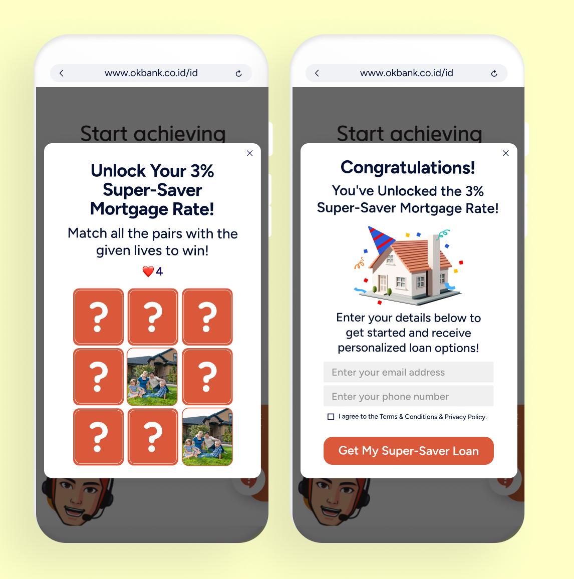 Engage high-intent, pre-login anonymous visitors through mobile-friendly, gamified templates like spin-the-wheel or memory games. Collect key customer data upfront, lower acquisition costs, and lay the groundwork for personalized engagement.