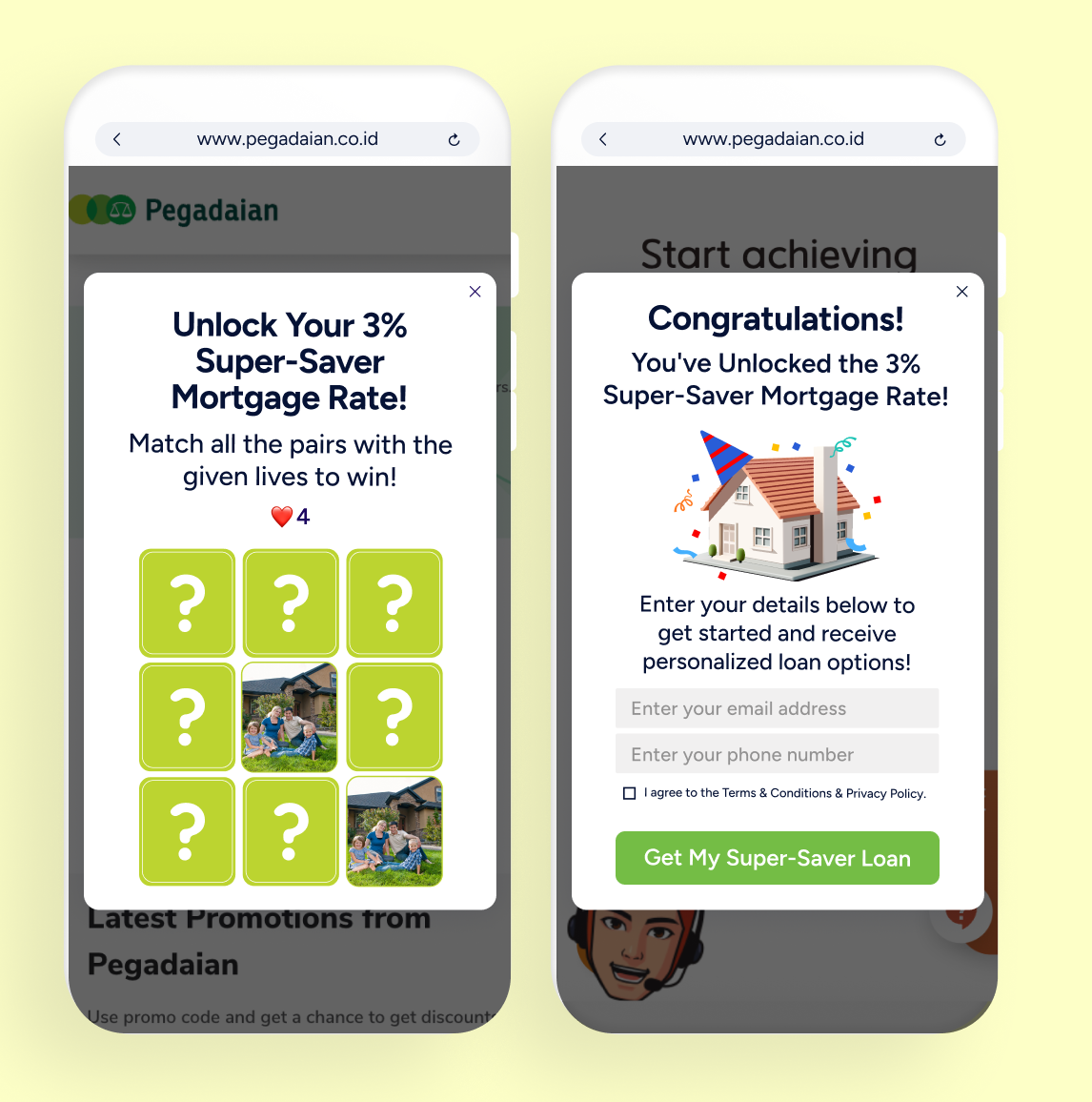 Engage high-intent, pre-login anonymous visitors through mobile-friendly, gamified templates like spin-the-wheel or memory games. Collect key customer data upfront, lower acquisition costs, and lay the groundwork for personalized engagement.