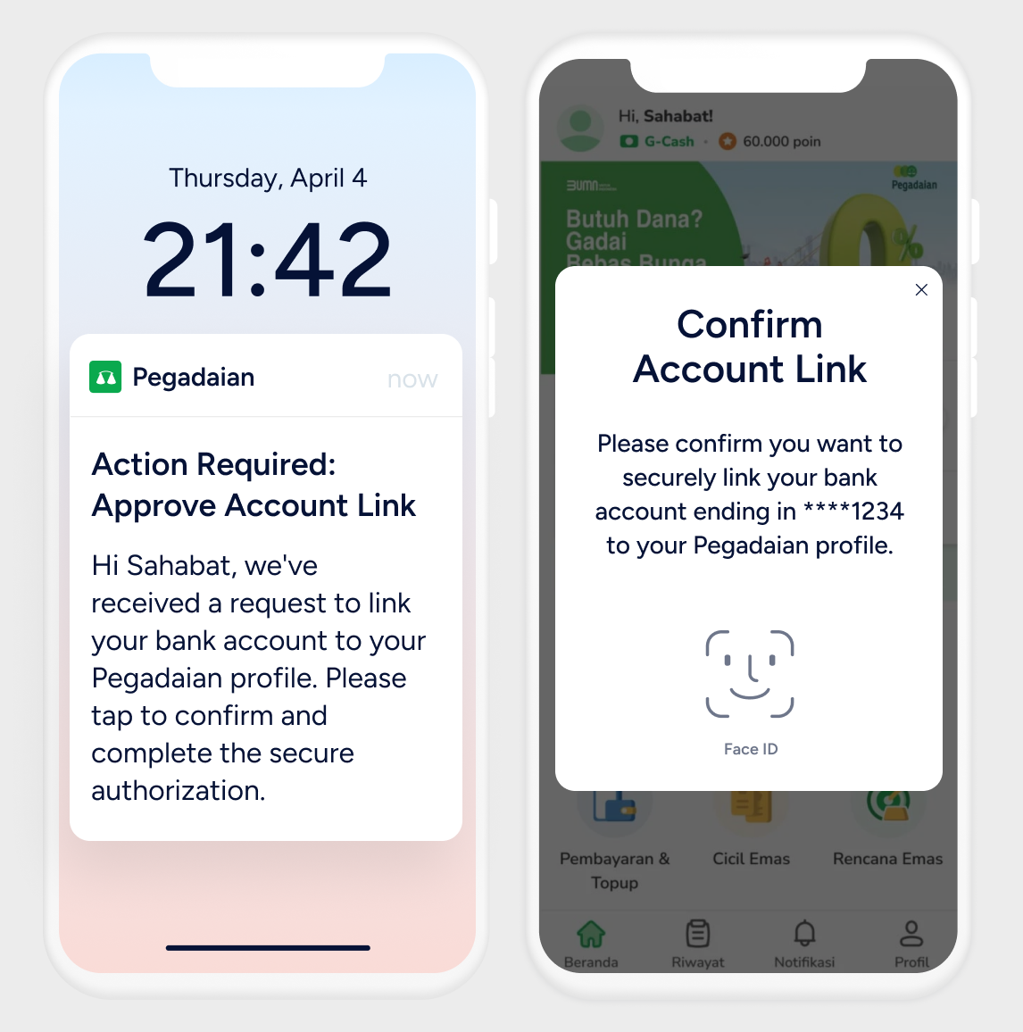 Trigger push notifications and require biometric or PIN confirmation for sensitive onboarding actions. Personalize flows by role and risk, ensuring security without disrupting the customer experience.