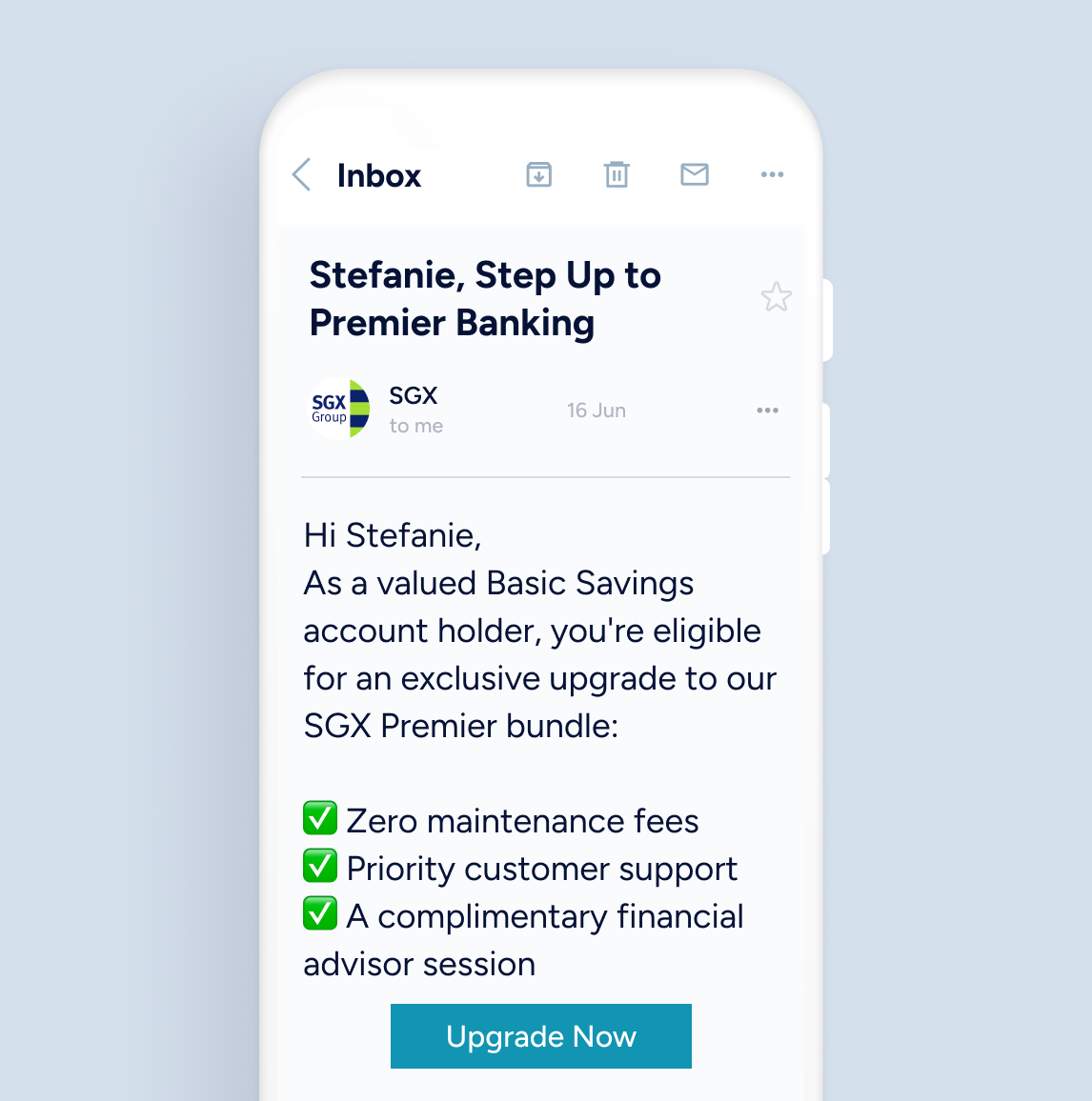 Win back disengaged customers through email campaigns offering bundled upgrades with real value. Give priority support, fee waivers, and loyalty rewards that spark action.