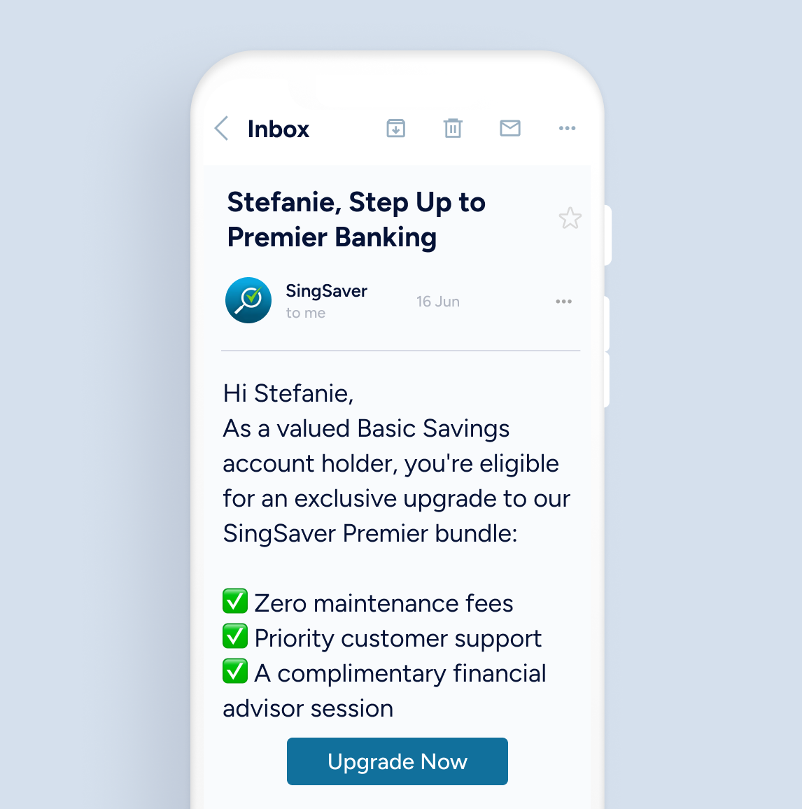 Win back disengaged customers through email campaigns offering bundled upgrades with real value. Give priority support, fee waivers, and loyalty rewards that spark action.