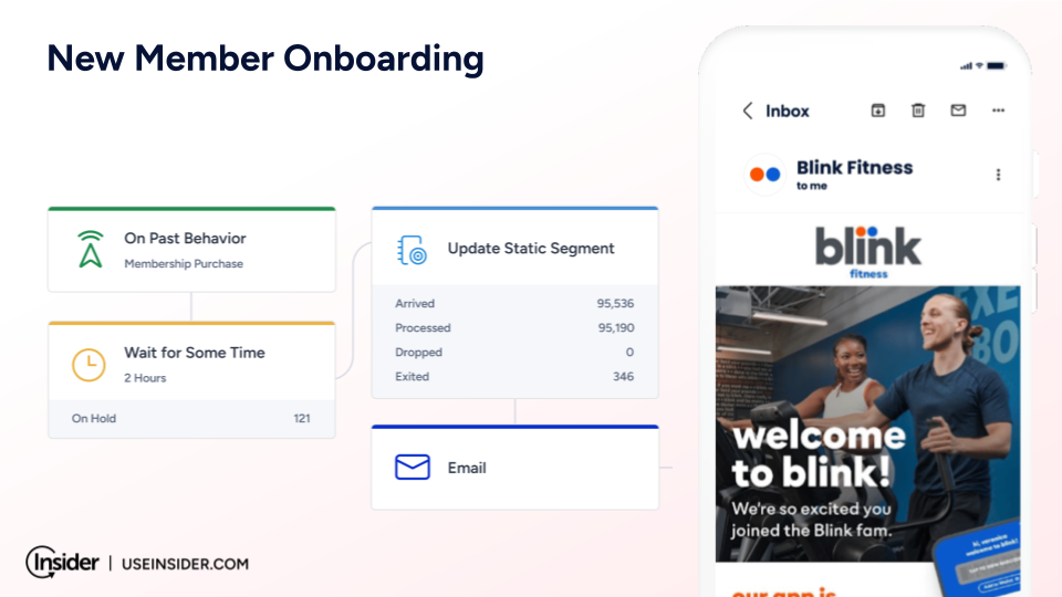 With Insider One, Blink can deliver a tailored onboarding experience that empowers members from the moment they join, ensuring they feel supported and engaged. Leveraging behavioral insights and first-party data, Blink ensures it can offer unique experiences aligned with each member’s goals.