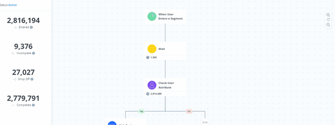 Insider One also provides access to live stats, that provide real-time performance insights and infographics on the journey campaign in action. Marketers can also leverage A/B Test statistics to compare different paths within a single journey campaign and the revenue uplift from individual campaigns.