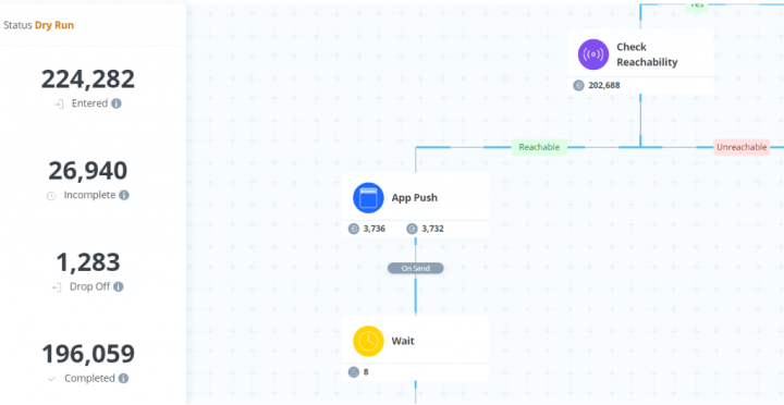Testing is essential to optimize a campaign, as it simulates how a customer journey would play out in real life. Add to that the ability to conduct dry run campaigns that simulate a journey to understand customer engagement across channels and the potential revenue uplift. Insider One’s helps marketers get an early heads-up into their campaign, by forecasting its potential.
