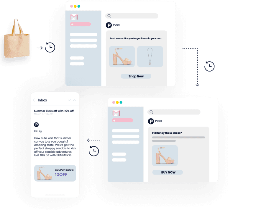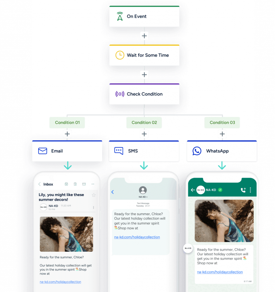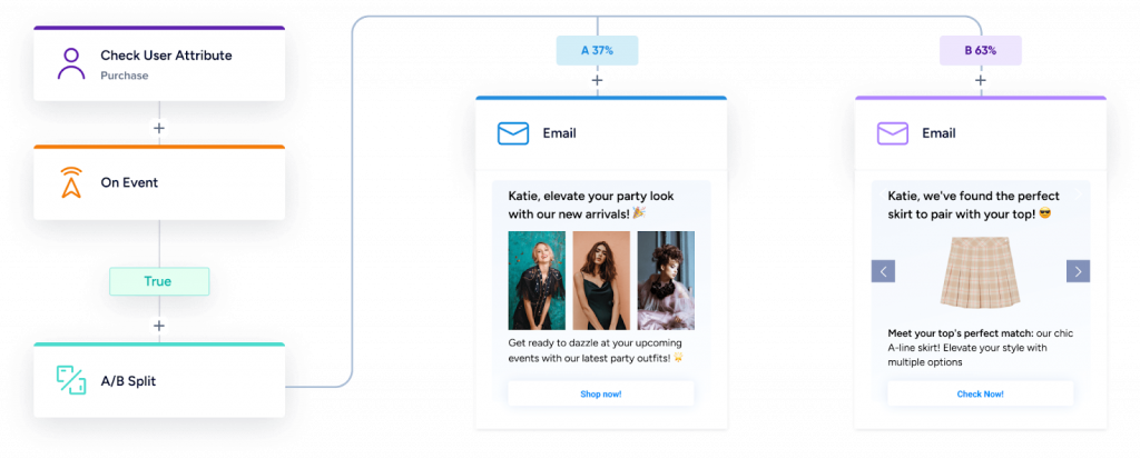 For example, if a customer doesn’t engage with your emails but continues to browse your website, you can trigger a message with relevant content or product recommendations on another channel. Or, if you’re not sure which channel to try, you can A/B test email against other touchpoints to see which ones users prefer.