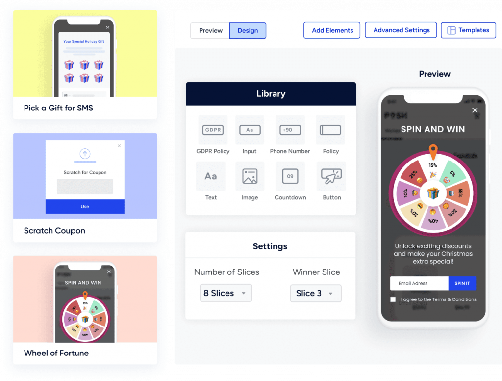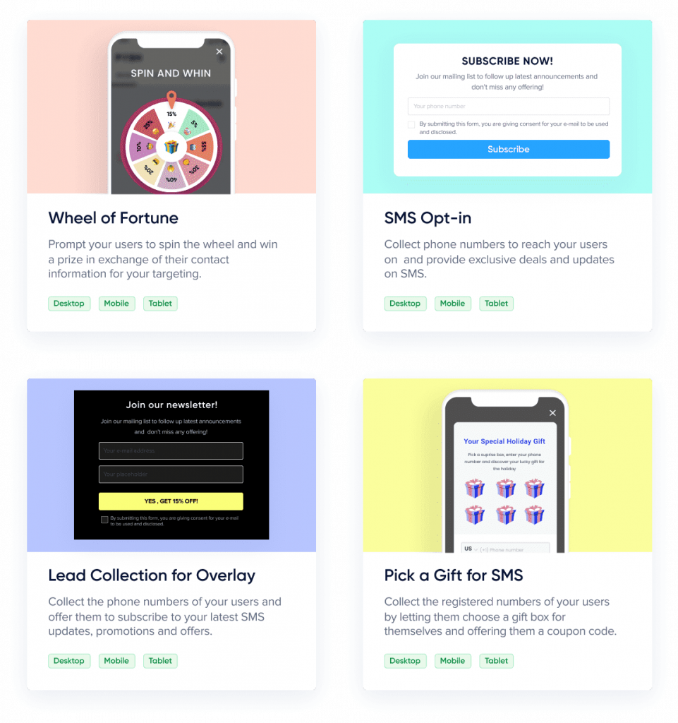 Another option is to use gamification for a more engaging lead generation approach. Insider One offers various gamified templates that incentivize users to leave their email or phone number like “Pick a Gift” or “Wheel of Fortune”.