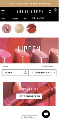 To boost product discovery and conversion rates for first-time visitors, Bobbi Brown uses Instagram-like stories via InStory from Insider One on their category pages. The familiar user interface provides full-screen visuals to help visitors navigate to top sellers and top viewed products on the website
