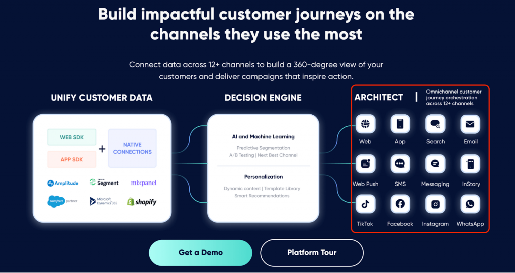 - Increase conversions, engagement, and revenue by personalizing all messages and sending them to the right people, on the right channels, at the right times.