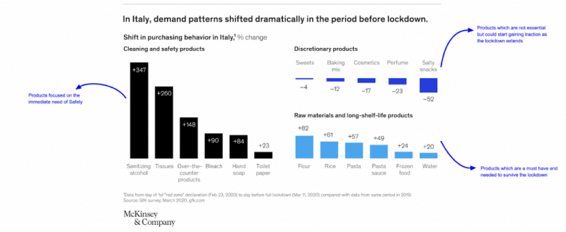 While there are several actions being taken by marketers across the world, we feel there is a need to have a guiding framework on how and where you invest your efforts. To understand this better let’s look at this data point from McKinsey that explains the shift in buying patterns post lockdown in Italy in an extremely simple way.