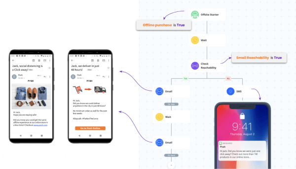 Have a user base that has been predominantly shopping through your offline stores? Now is the time to help them practice social distancing while getting a similar or better experience through your online store. Create and execute campaigns that emphasize social distancing and convey that by going online everyone can do their part in reducing the spread of COVID-19.