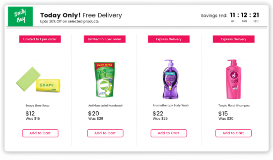Having all the information upfront to help facilitate a purchase decision might be the single biggest influence on customer experiences these days. For must-have products where you would want users to avoid hoarding, it would be best to give them information on the rationing of these products. Product badging can serve as a great way to highlight this information in your listings page.
