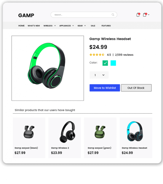 Recommendations can serve as a great way to tackle stockouts. Leverage similar or alternative product recommendations on product pages for out of stock products or on zero search results pages.