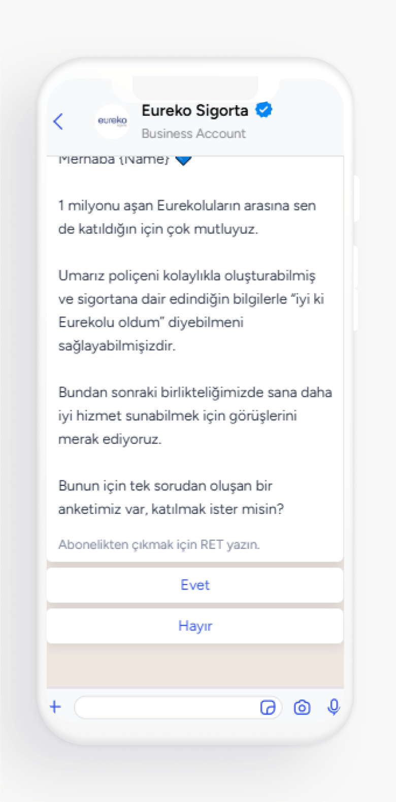 Insider helped Eureko Sigorta transition from SMS to WhatsApp for policy renewal notifications. This enabled more engaging and interactive communication with customers, leveraging WhatsApp’s conversational capabilities to improve customer interaction.