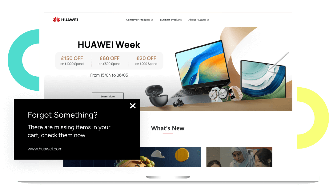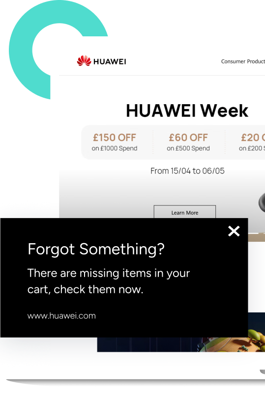 For Huawei, like many other retailers, the convenience of online shopping empowers customers to shop at their leisure. However, it also opens the door for customers to abandon their carts without completing their purchases. Huawei was looking for a solution to boost conversions and reduce cart abandonment rates.