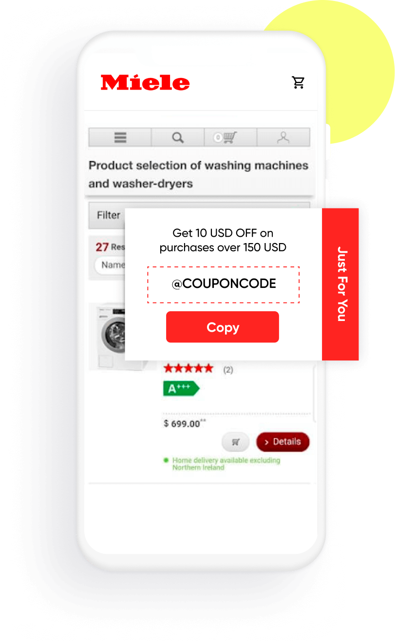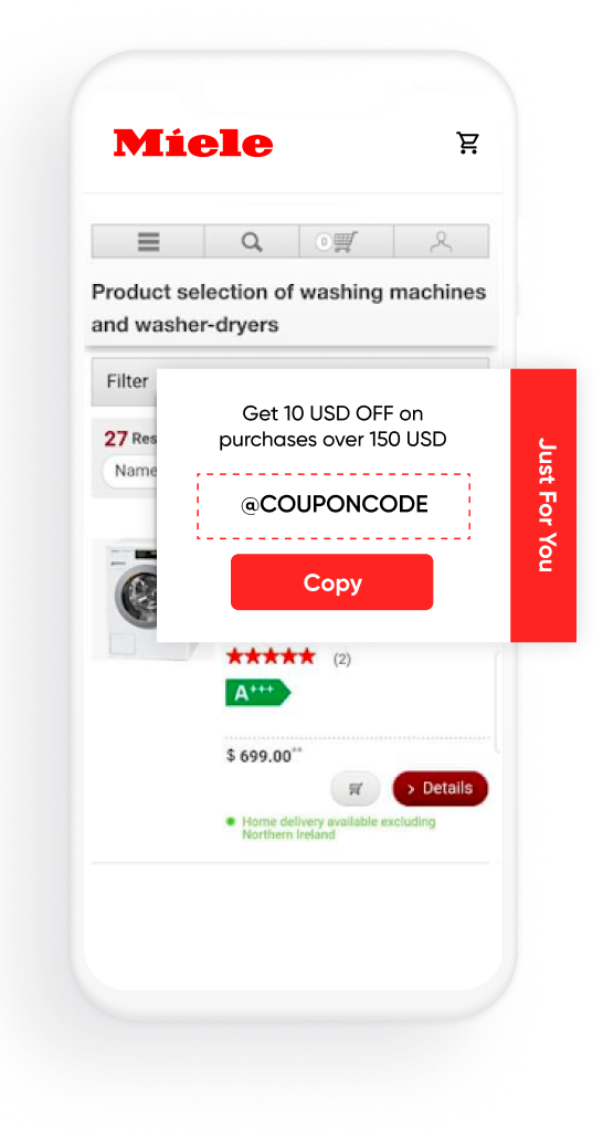 With the discount code, customers could add their complementary product to the cart at a lower price and ensure their appliances were as efficient and effective as possible. Smart Overlays helped Miele boost its brand reputation as the products were now performing at their best, increasing positive reviews in new markets and driving more revenue.