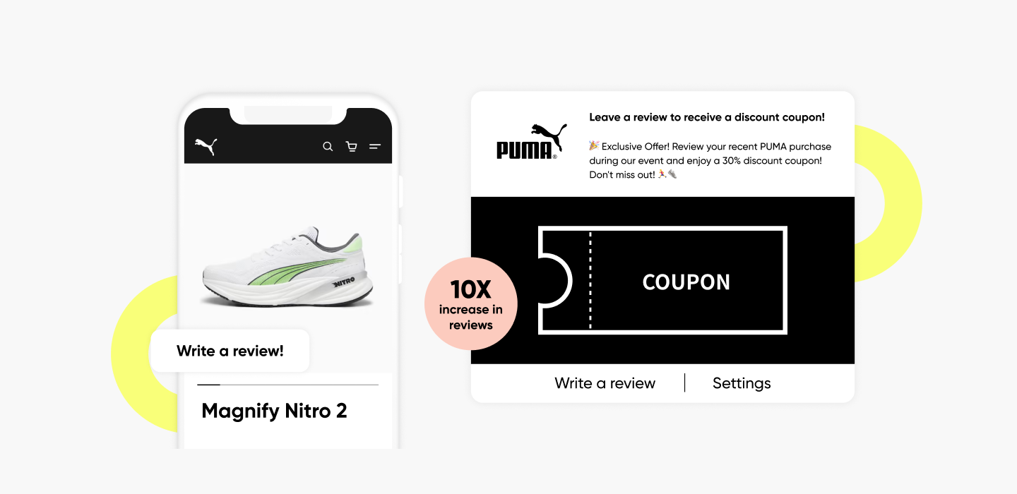This approach provided a concrete incentive for customers to leave a review and instilled a sense of psychological urgency. Within one month, the number of product reviews on PUMA’s official online store increased more than 10X compared to the previous period. The discount coupons also led to repeat business from customers, with coupon expiration reminders encouraging customer engagement.