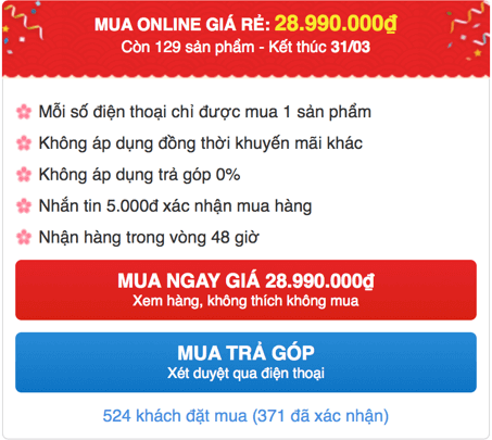 The main issues regarding the other pages were the bad positioning of their CTA buttons and the lack of crucial product information the visitor needed to make a positive and smooth buying decision. In essence, it was not easy for The Gioi Di Dong’s visitors to buy.