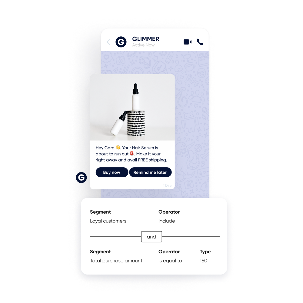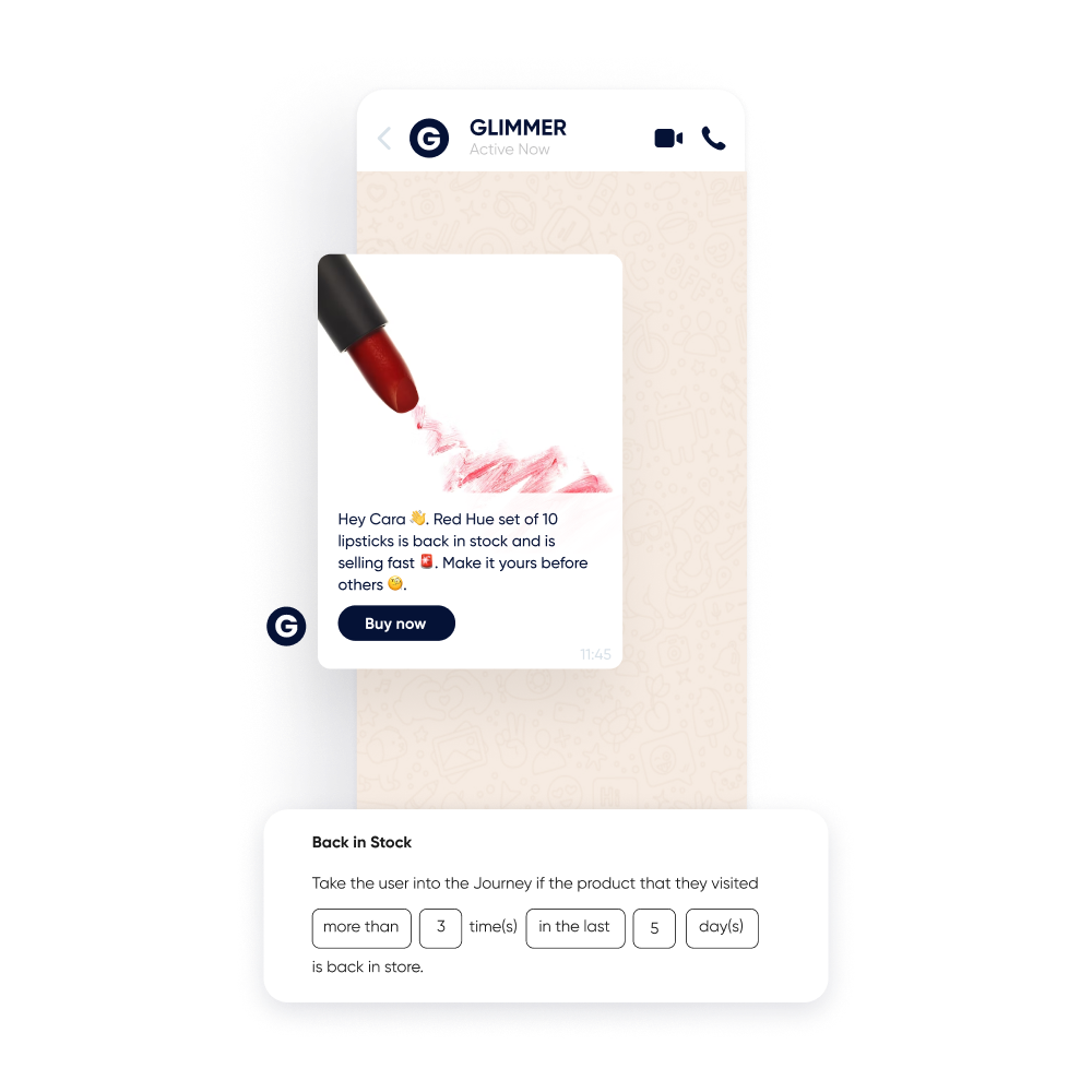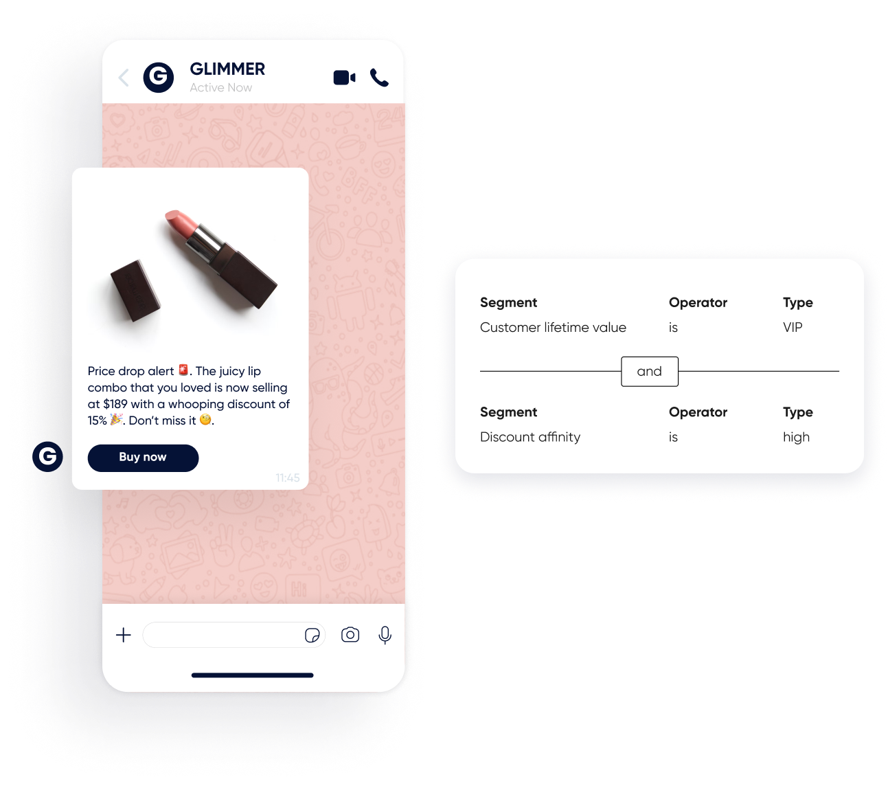 Using Architect’s price alert template and choosing WhatsApp as the channel, the beauty brand was able to send out price drop alerts in real time—and at scale. For this campaign, they segmented VIP customers with higher discount affinity. They then used a CTA message template with dynamic content (such as the name of the product and its current price) to deliver highly personalized price alerts. This led to 67% increase in conversion rate and eventually helped them gain 2.3X higher revenue per customer.