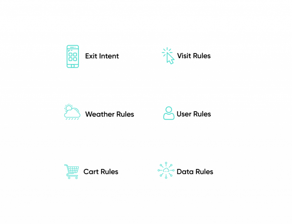 Insider’s rule engine helps you set parameters around sessions, exit intent, and even a customer’s local weather, or customize your own.