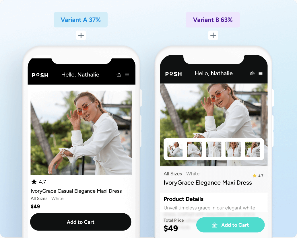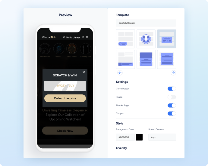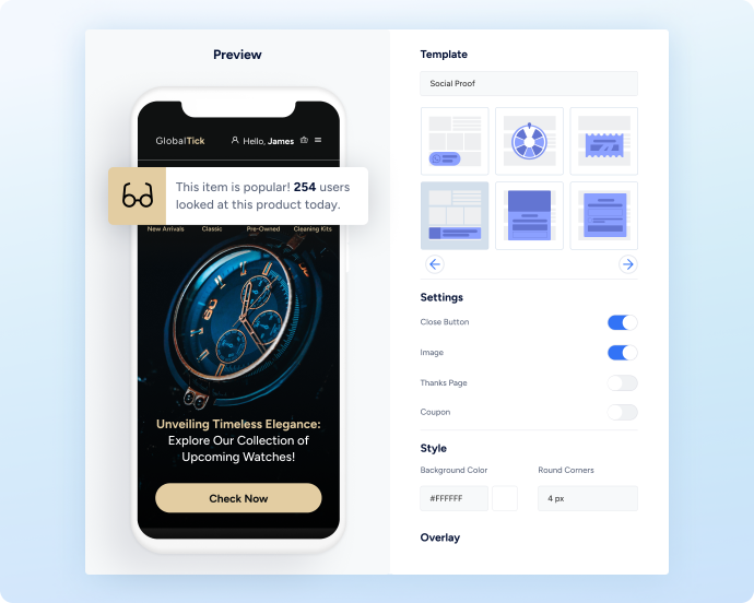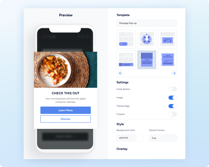 Take advantage of our library of ready-made templates covering multiple industries, business goals and metrics to create personalized app experiences – without IT support. Customize layouts and add elements such as countdowns, CTA buttons, and more in a single click.
