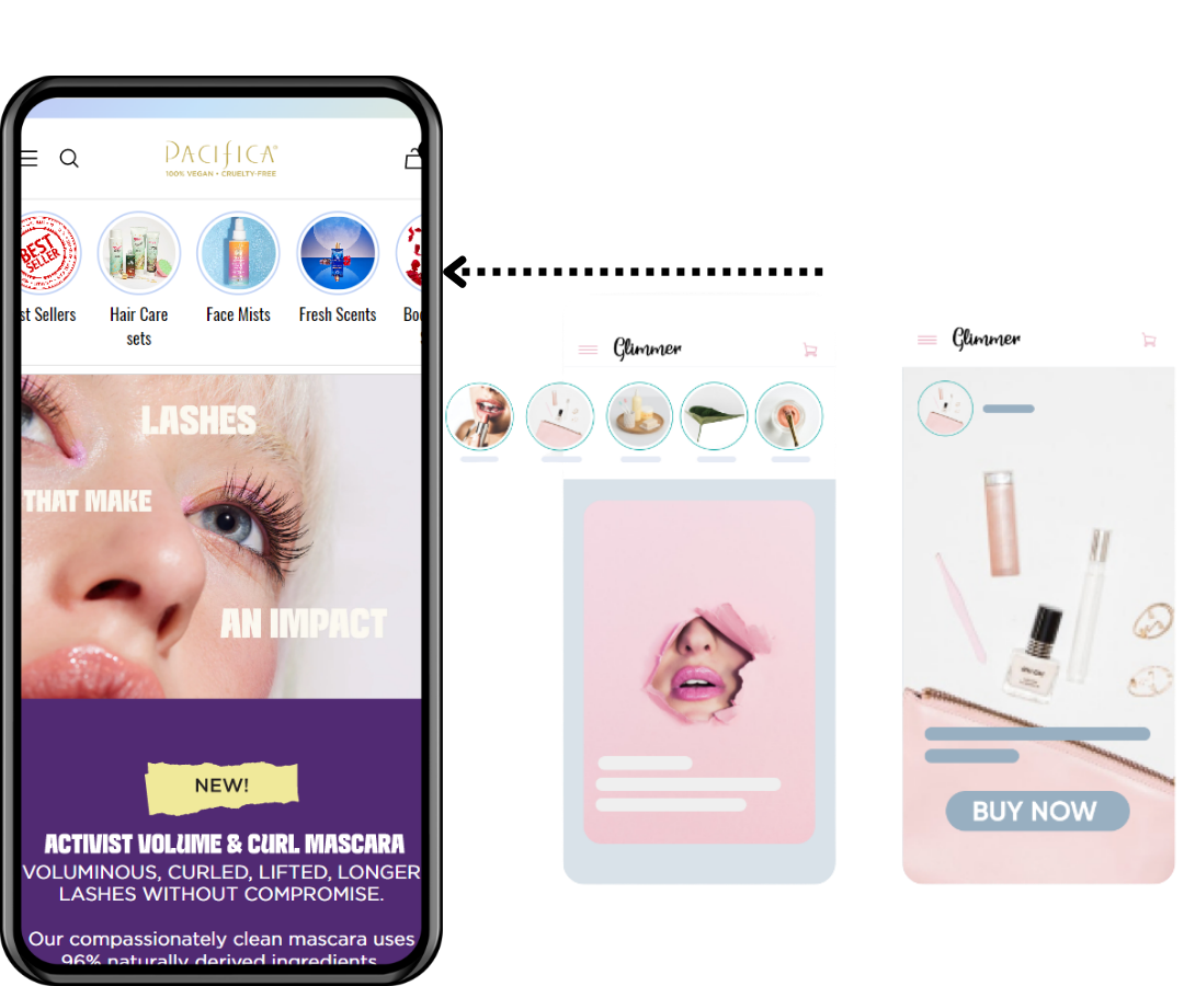 Attention spans are short. With InStory, you can capture your visitors’ imagination. Customize each full-screen story based on purchase history, real-time behavior, and predicted actions to reduce mobile bounce rates and help users find what they’re looking for.