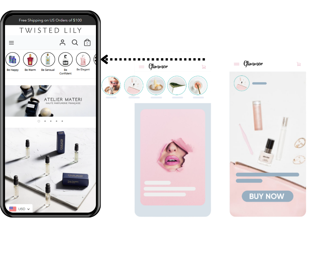 Attention spans are short. With InStory, you can capture your visitors’ imagination. Customize each full-screen story based on purchase history, real-time behavior, and predicted actions to reduce mobile bounce rates and help users find what they’re looking for.