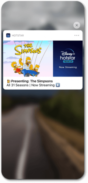 Hotstar using in-app to prompt about the addition of Disney+ to the logo for ott marketing