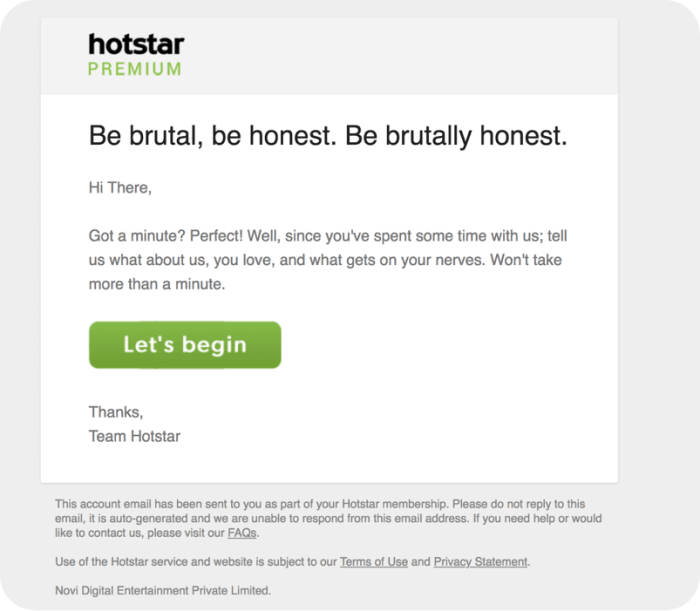 For any business, it’s important to get user feedback to deliver a better customer experience, and video streaming businesses are no exception. Your focus should be on strengthening the relationship between the brand and the customer. Send email surveys to your most valuable users asking them what they like and don’t like about your platform. This will help you in getting the most critical feedback that could help maintain service excellence and retain your subscribers.