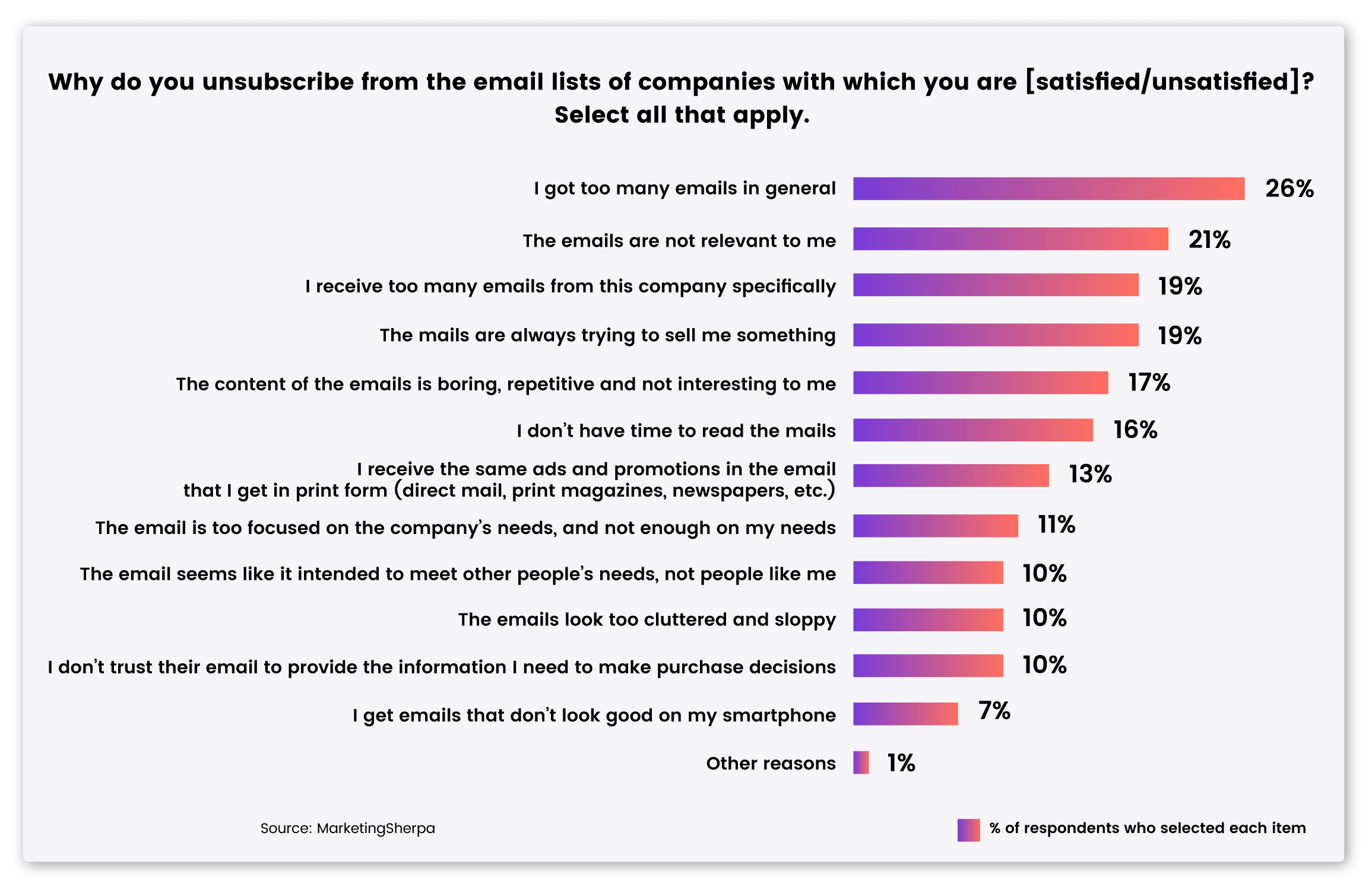 Commonly referred to as email fatigue – the situation where looking at your cluttered inbox makes you engage less; is what has led to the decline of the channel’s popularity.