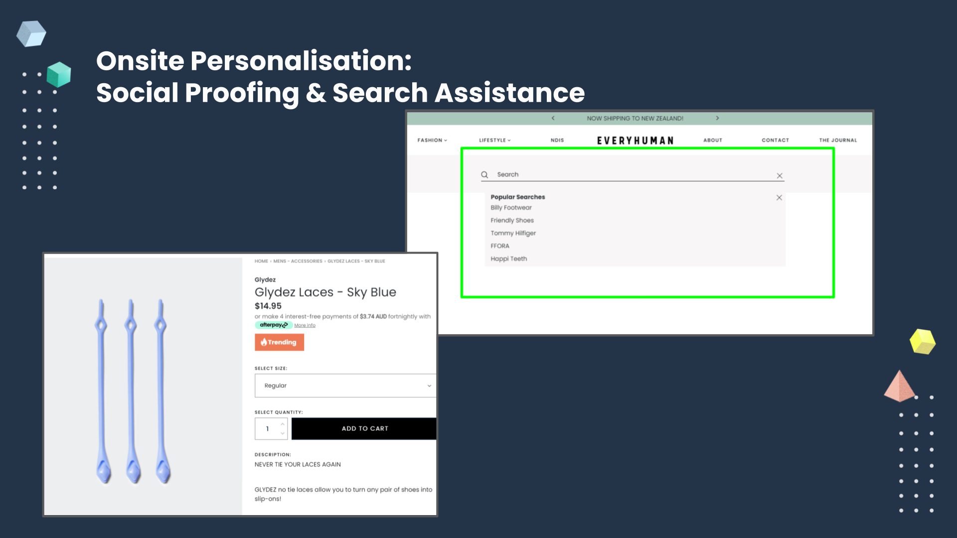 EveryHuman uses a variety of onsite personalization templates for different audience segments thereby optimizing various intents and behaviors, including: